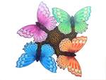 2012Zes kleurige vlinders verbonden in een wielvorm, op gezaagd paneel in de vorm van de vlinders.