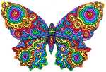 2012Een kleurige vlinder, op gezaagd paneel in vlindervorm.